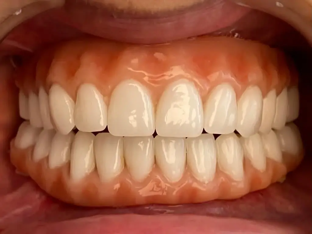на ваши дёсна надевают защитные силиконовые капы пока готовятся ваши новые зубы